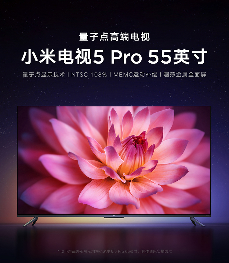 商品名称:小米电视5 Pro 55英寸 5.9mm超薄全面屏 4+64GB大内存 量子点广色域 4K超高清 MEMC运动补偿 L55M6-5P